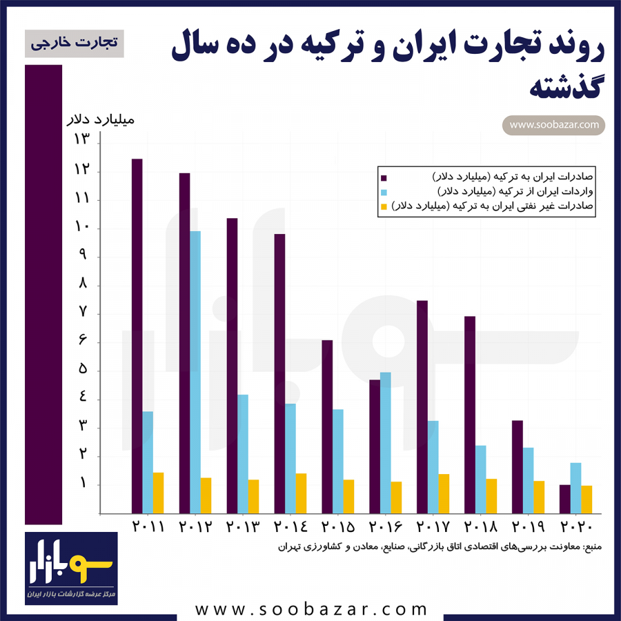 روند تجارت ایران و ترکیه در ده سال گذشته - گزارش بازار ایران