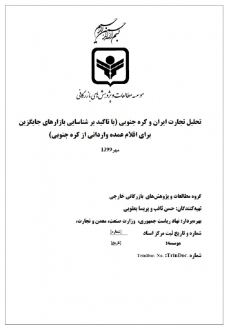 تحلیل تجارت ایران و کره جنوبی (با تاکید بر شناسایی بازارهای جایگزین برای اقلام عمده وارداتی از کره جنوبی) - گزارش بازار ایران